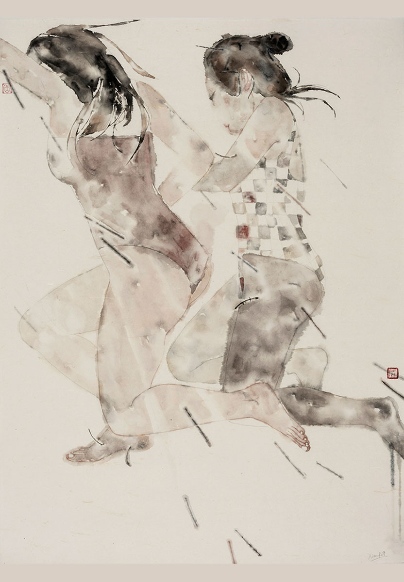 Zhen Guo 郭桢, Nosotras, pintura y collage sobre papel arroz.