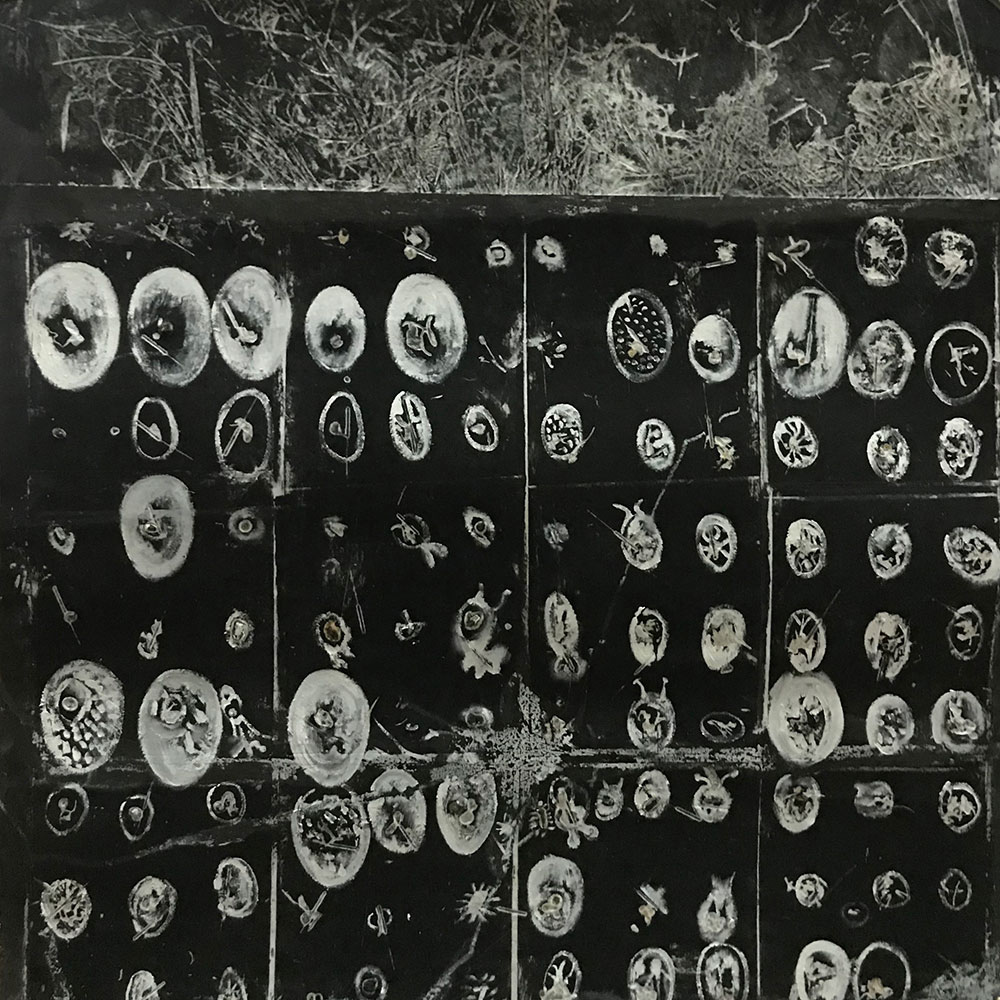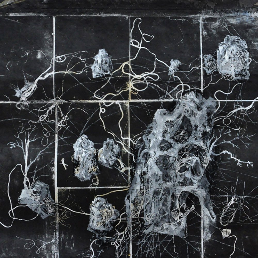 Zhang Dan 张丹, Génesis, pintura y collage sobre papel.